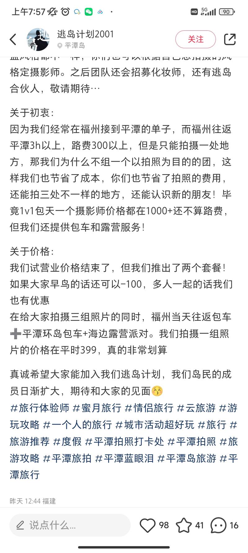 拍照旅行团 以拍照为目的…#情报远航2年前发布1460拍照旅行团 以拍照为目的的旅行团在小红书上最近兴起的一个小红书旅行方式目标用户就是那些想拍照,或者想被拍的人这和平台旅行相比较至少节省了摄影师的钱,来的基本会拍摄
