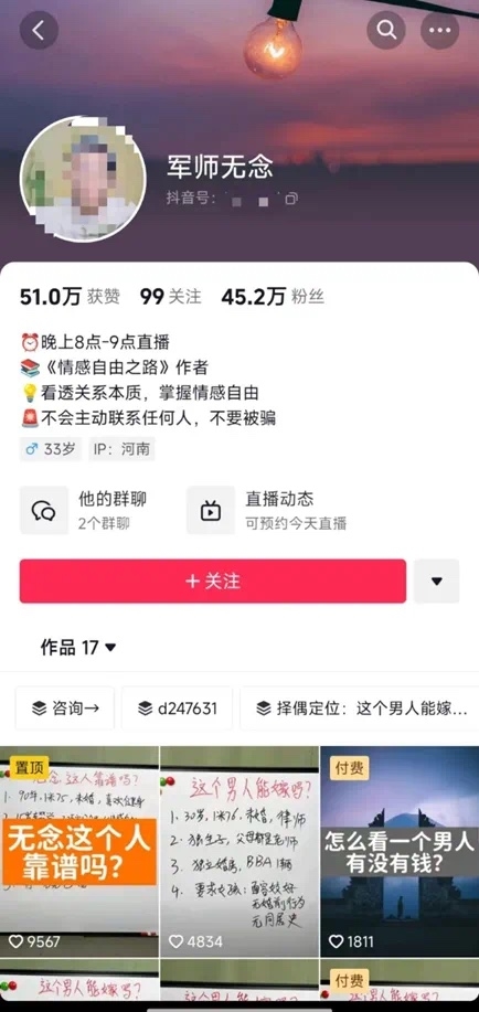 如果自己没有办法创作优质…#情报远航2年前发布1710如果自己没有办法创作优质内容,又想圈定精准人群,直接在策划定位时就把问题解决。只要圈定人群一直,自己就是自己的植入商,这个账号发的内容虽然枯燥乏味,但是人群特别精准,相当于反向吸粉,做同城红娘的账号