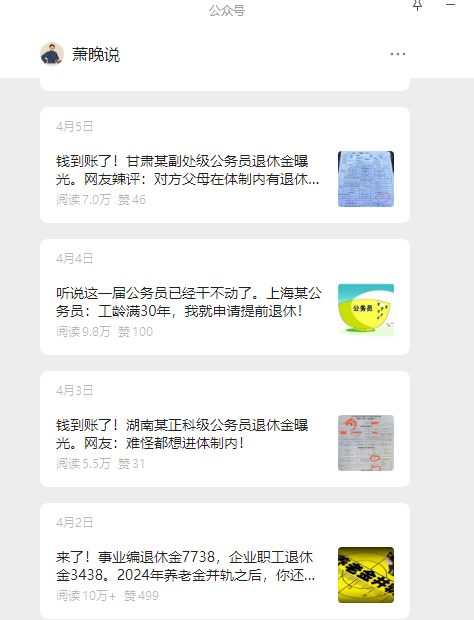 【钱到账了系列】主要把每个省的国企、事业的退休金爆料,然后加网友说。形成套路模板,效果顶瓜瓜